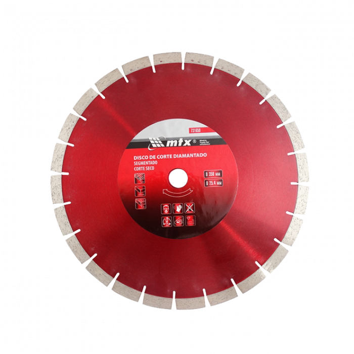O disco de corte profissional da Mtx Diamantado Segmentado possui alta concentração de diamantes na camada de corte, com alta performance para corte seco em materiais como: tijolo, pedra e tipos de concreto. Inclui anel adaptador de 19,05mm. Estas vantagens proporcionam melhor desempenho e vida útil.